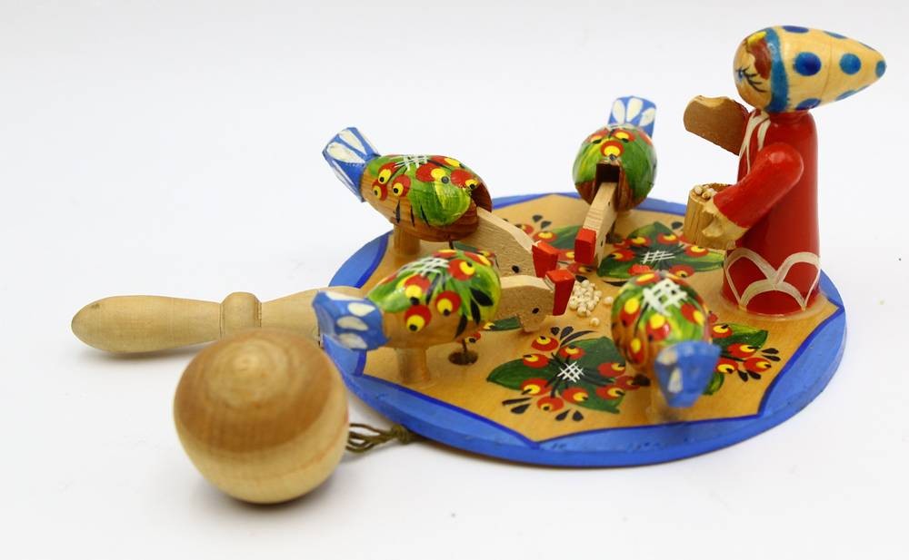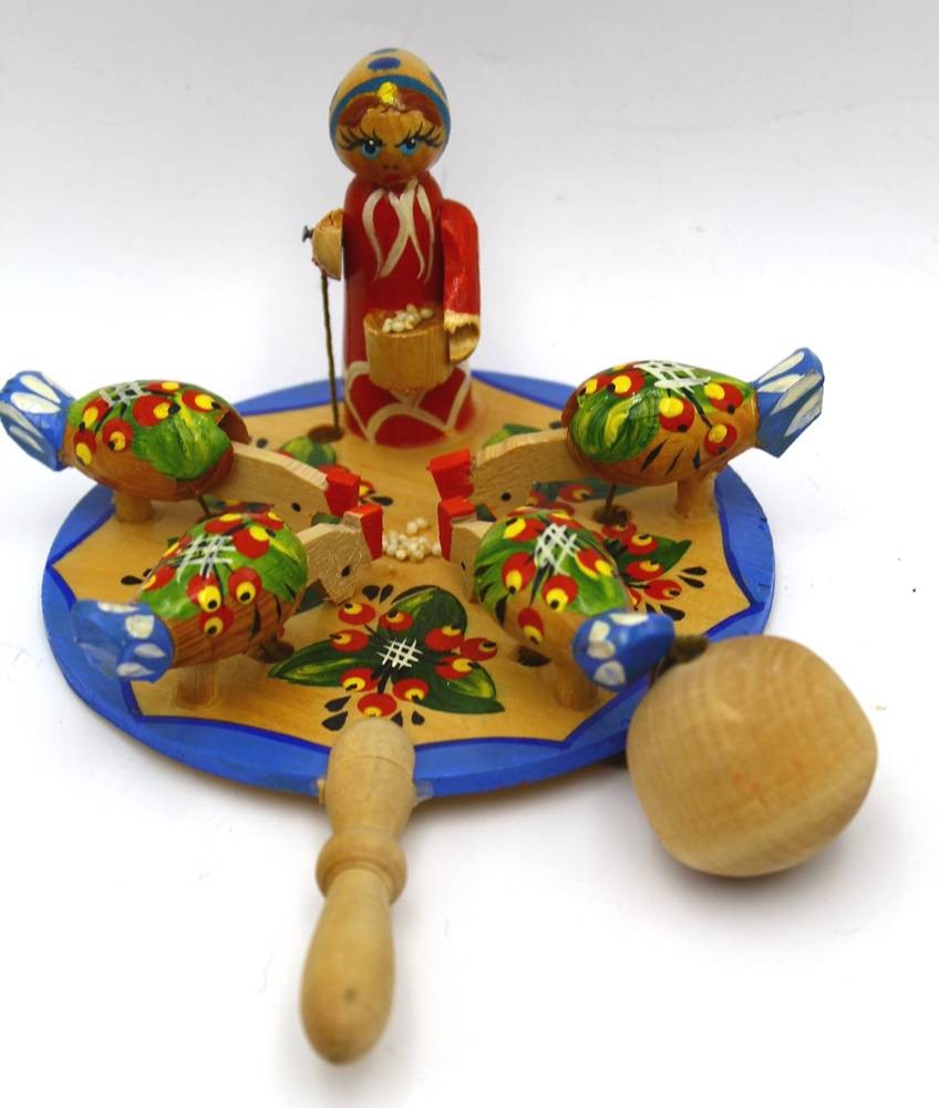 Holz-Kinderspielzeug mit pickenden Hühnern, Russland, L-16 cm, H-6 cm [1]