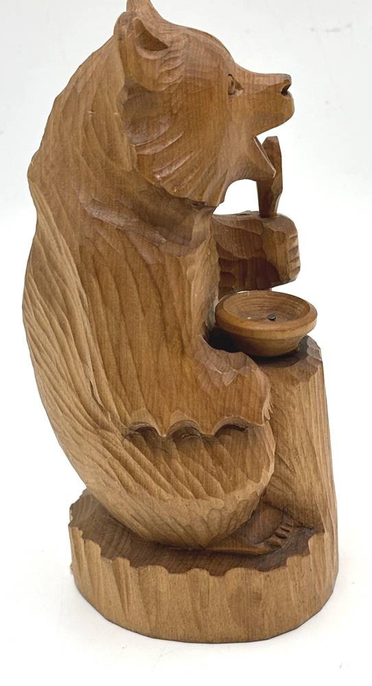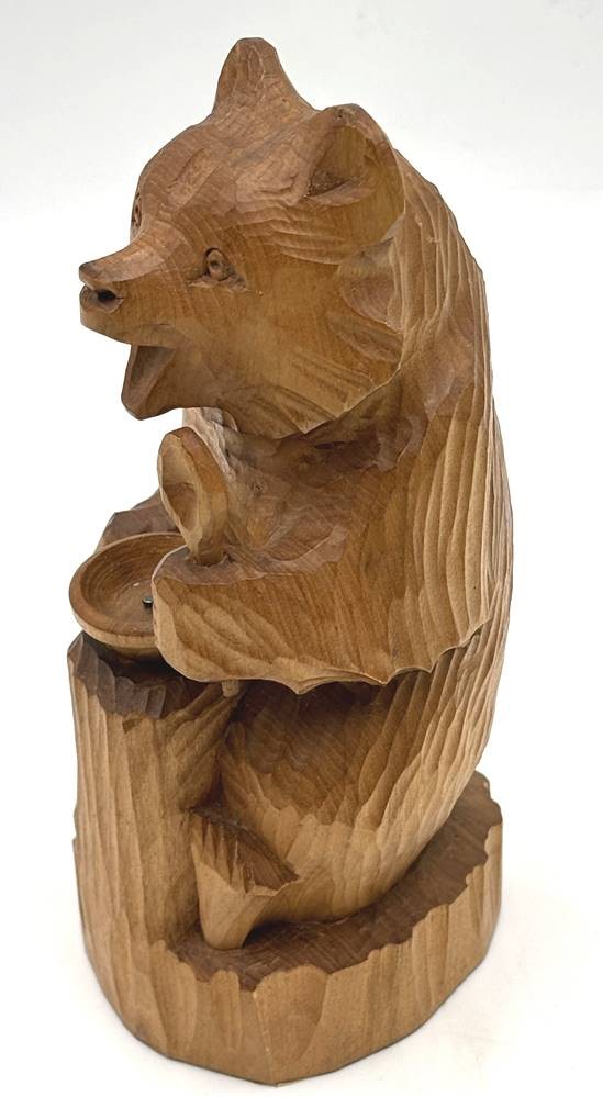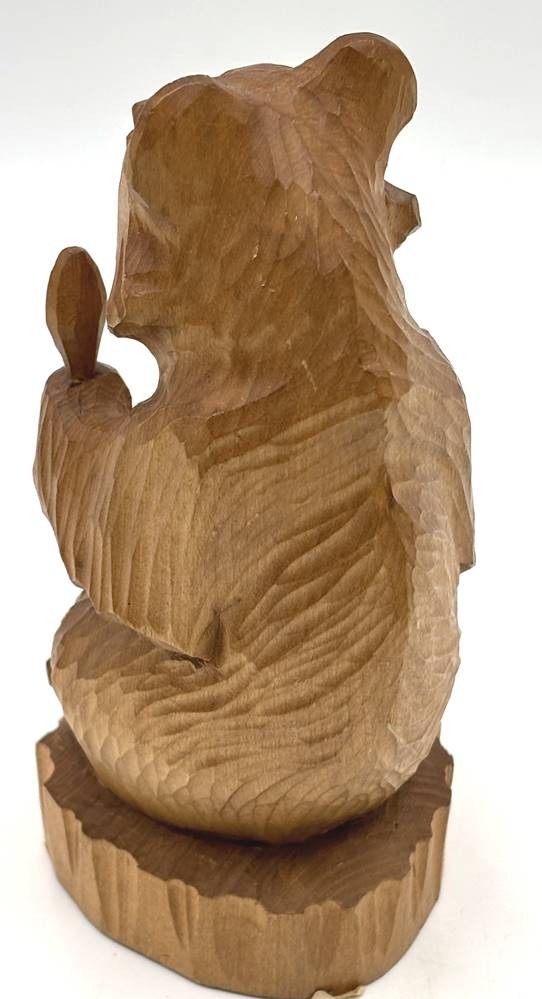 holzgeschnitzter Bär ,mit Schale und Löffel, Russland, orig. Etikett, H-18 cm, [1]