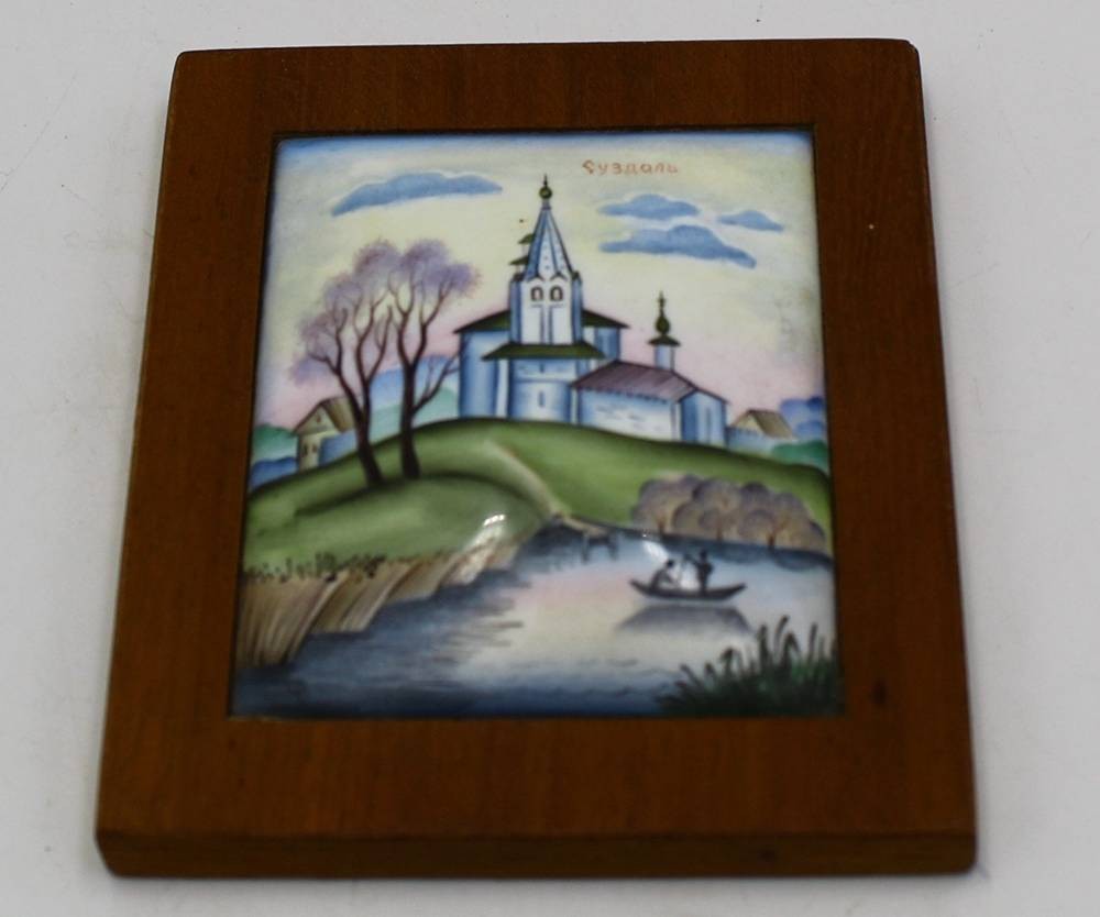 kl. gewölbtes Emaillebild, Russland, Holzrahmen, 9x7,5 cm [1]