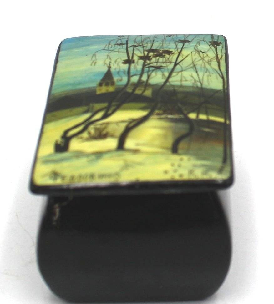 kl. handbemalte russische Lackdose, H-3,5 cm, L-6 cm, signiert