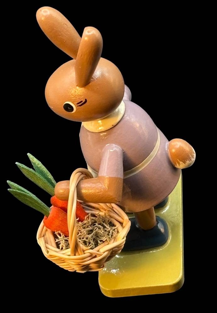 Osterhäsin mit Korb, Etikett, H-9 cm