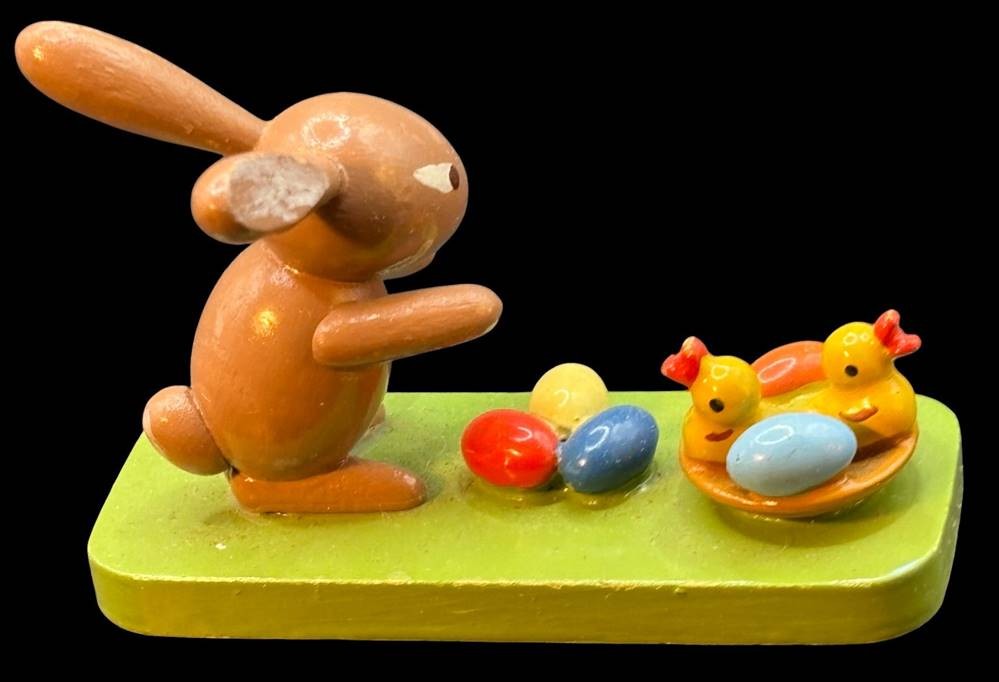 Osterhase mit bunten Eiern und Küken, H-4,5 cm, L-7,5 cm [1]