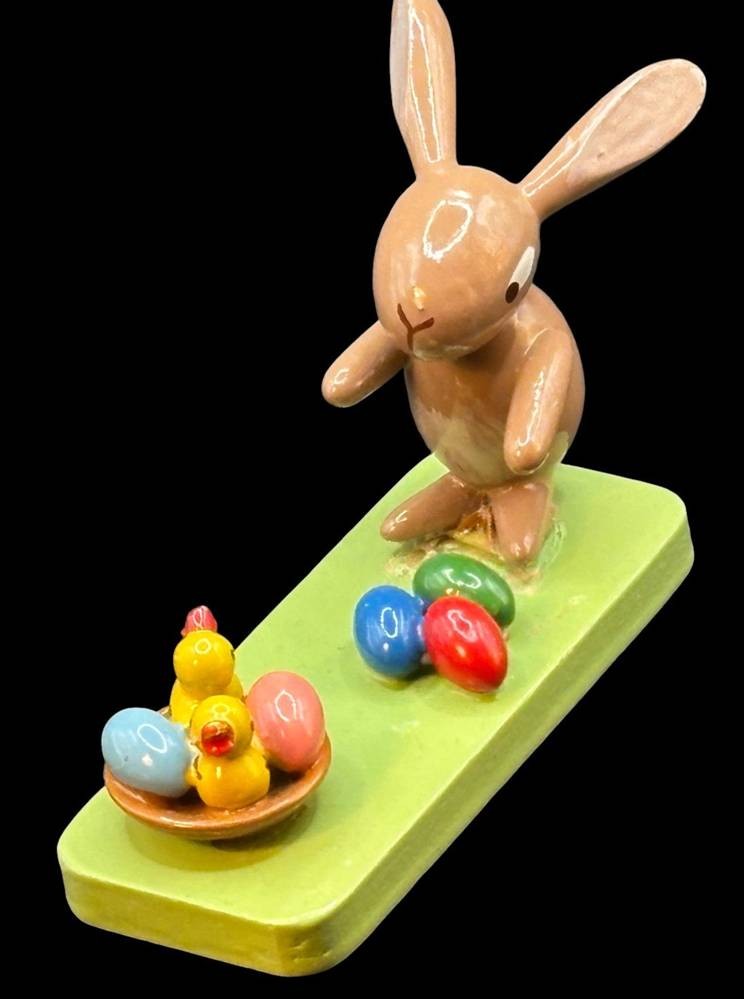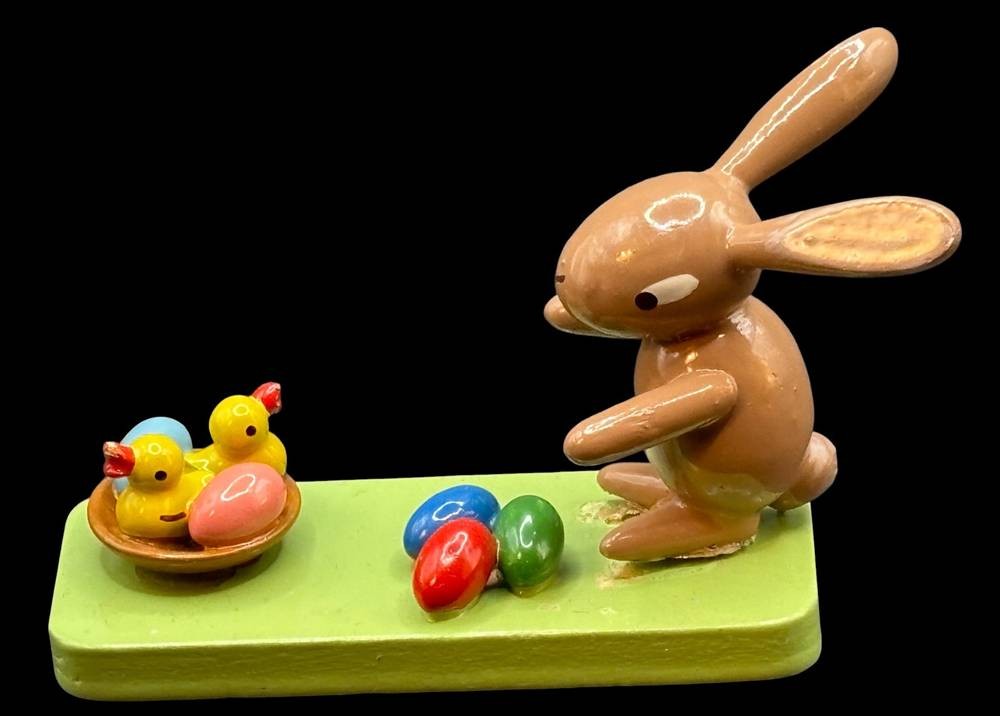 Osterhase mit Nest und Eiern, Erzgebirge, L-7 cm, H-4,5 cm, Hase lose [1]