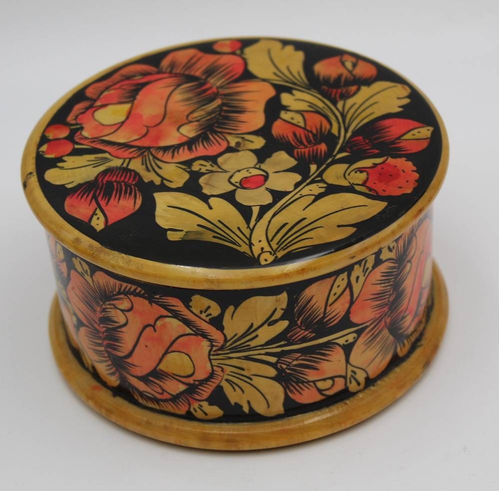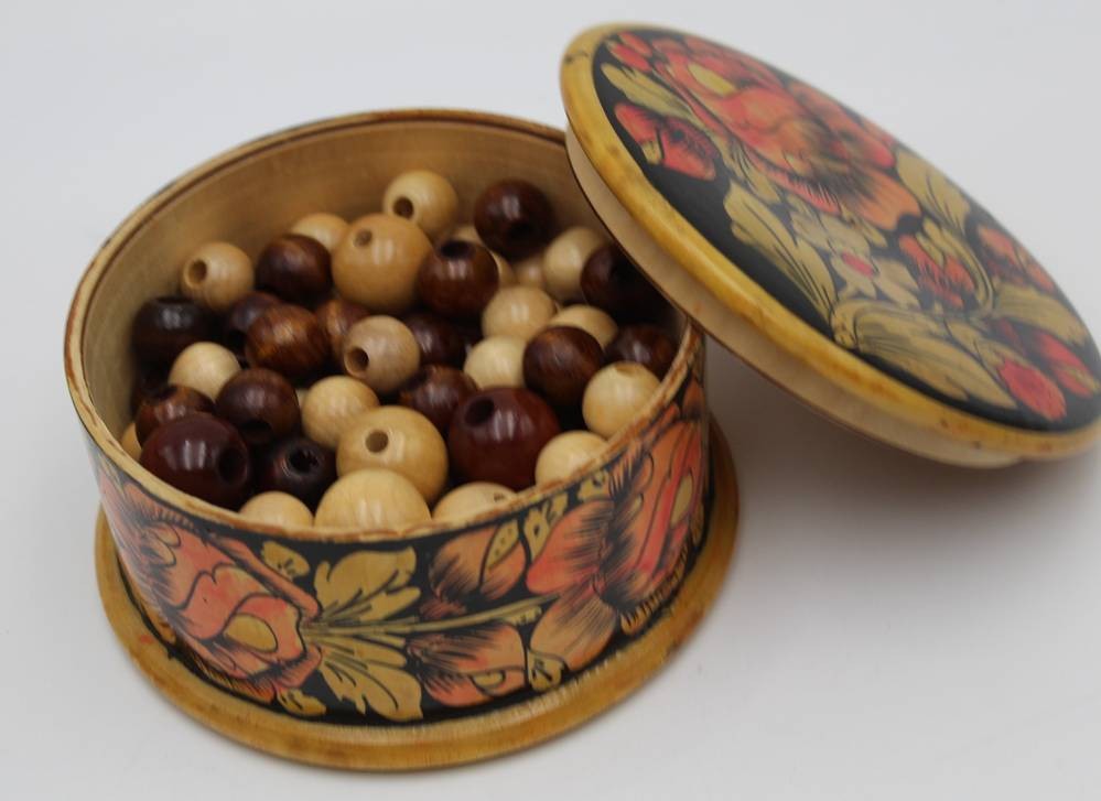 russische Dose, handbemalt, gefüllt mit Holz-Perlen, Dose H-7 cm, D-12 cm [1]