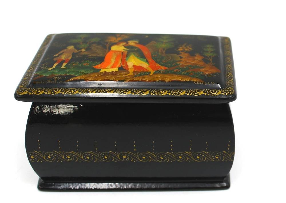 russische Lackdose, Märchenmotiv, signiert, H-5,5 cm, 6x9 cm [1]