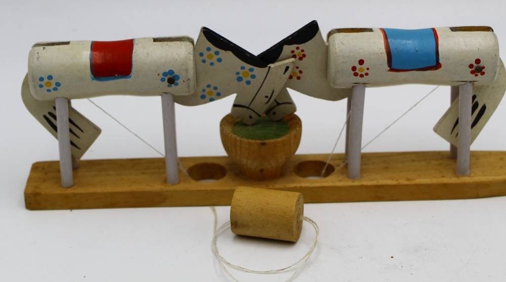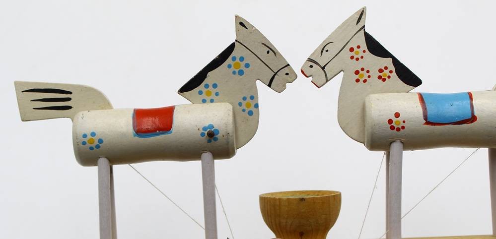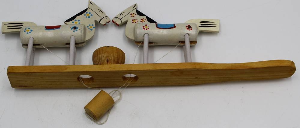 russisches Hand-Spiel, 2 Pferde trinkend,Holz bemalt, L-28 cm, H-8 cm [1]