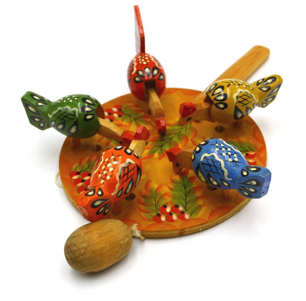 russisches Handspielzeug mit Pickhühnern, L-19 cm,