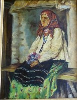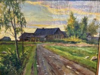 unleserl. sign. "Frauen beim Kirchgang" Öl/Platte, gerahmt, RG 55x43 cm