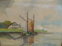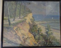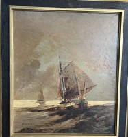 kl. Seestück, unsigniert, in der Art von Heinz MINDERMANN (1872-1959), älter, Öl/Malkarton, restau.bedürftig, RG 17 x 21cm