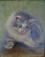 Sauer "Katzenportrait" Öl/Malfaser, gut gerahmt, 24x20 cm