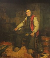 gr. Gemälde von Hermann GÖHLER (1874-1959), Personen am See, Öl/Leinwand, gerahmt, Rahmen beschädigt, RG 84 x 93cm, Sperrgutversand
