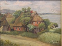 Simoleit Hans, (1908-1975,) 1947, Aquarell, Häuser am See, gut gerahmt/Glas, RG 42x50 cm