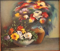 unleserl. signiert, Blumenbild, Öl/Platte, gerahmt, RG 16x16 cm