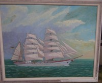 Solaman, Vollsegler, Öl/Leinwand doubliert, schlicht gerahmt, RG 66 x 97cm.
