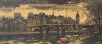 Dino Daolio Duren (1917-1983), Il fiume po 1980, Naiv, Öl/Malkarton, ger./Glas, RG 39 x 51cm