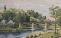 Christel Hudemann, Torhaus und St. Martinskirche, Aquarell, gerahmt/Glas, RG 64 x 53cm