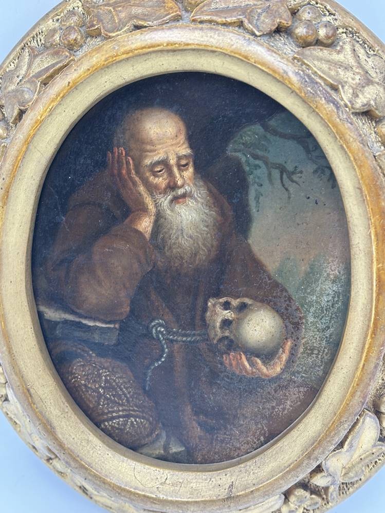 2x Heiligenportraits, Kopien, wohl Öldrucke nachgemalt?, gut gerahmt, RG 21x18 cm [1]