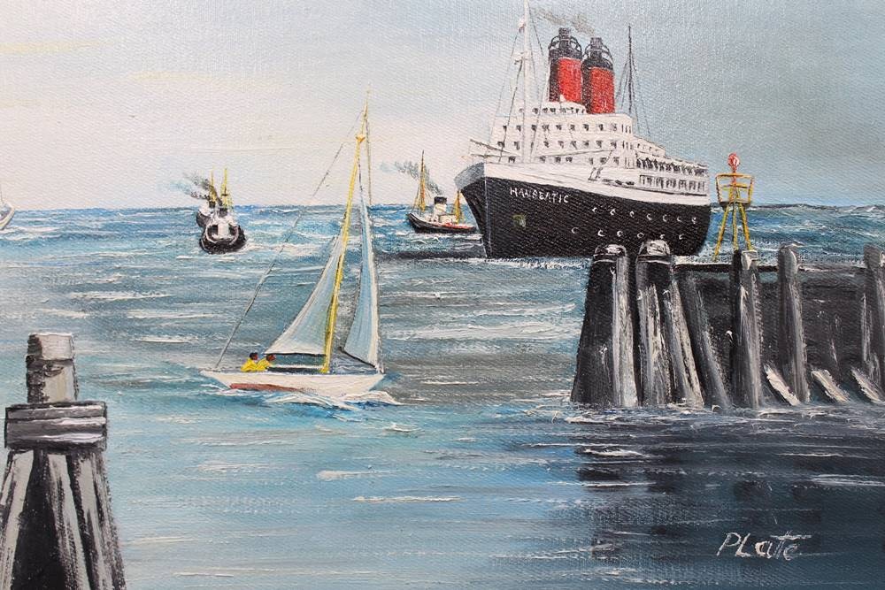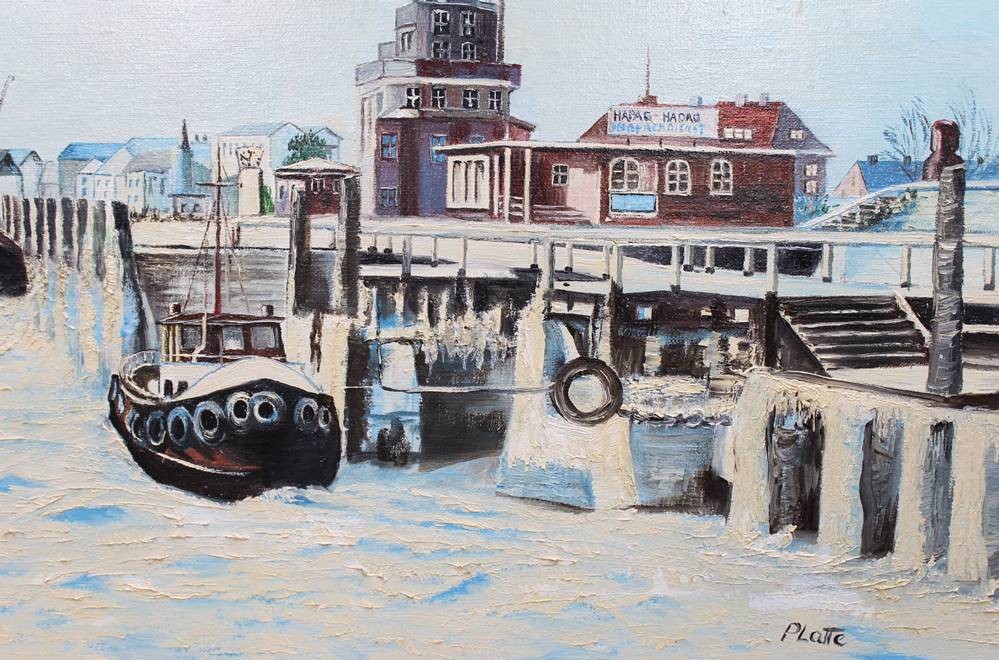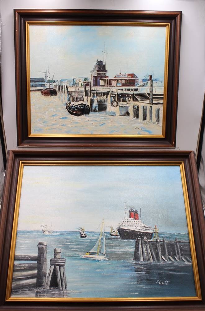 2x Öl-Gemälde, signiert Plate, Cuxhaven-Motive, je gerahmt, RG ca. 50 x 60cm [1]