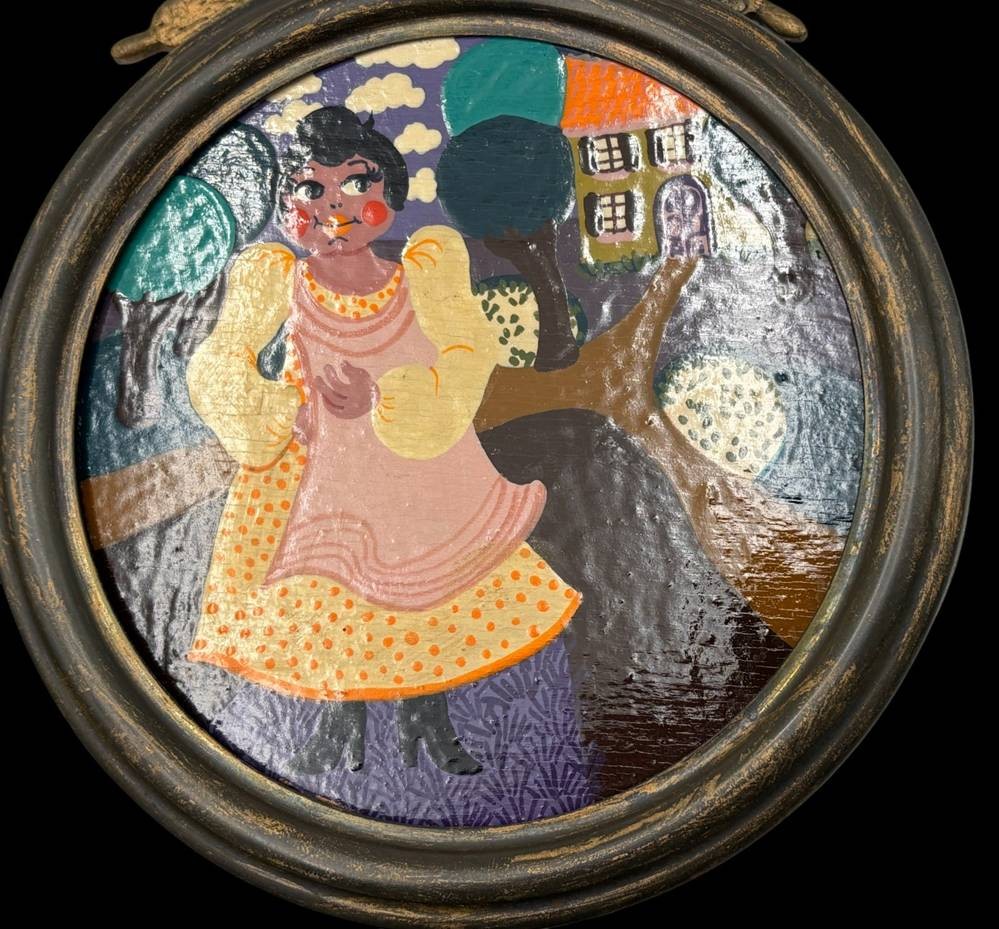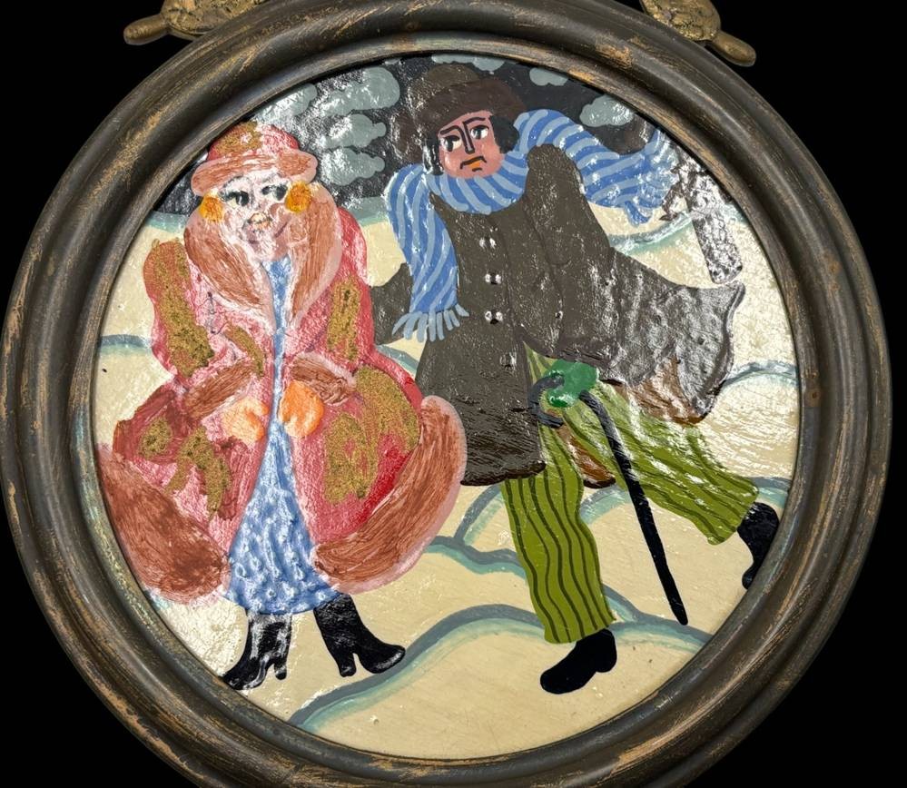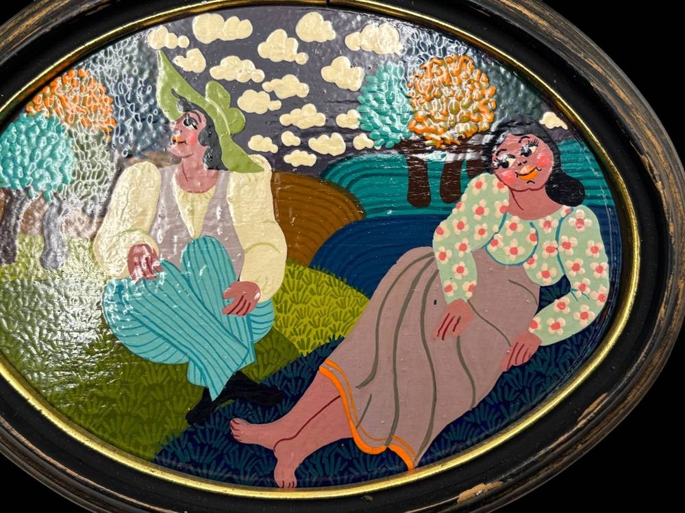 3x kl. naive Gemälde (Emaillefarben??), in Messingrahmen, 2x H-18 cm, einmal oval 19x15 cm [1]