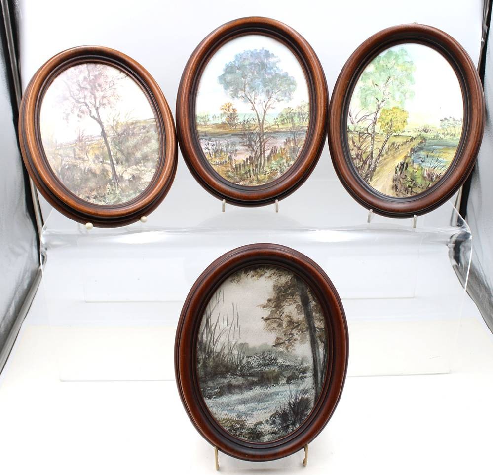 4x Jahreszeiten-Aquarelle, signiert B.Zwick, je oval gerahmt, RG 28,5 x 22,5cm [1]