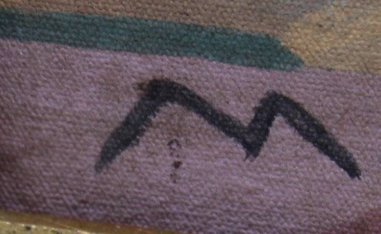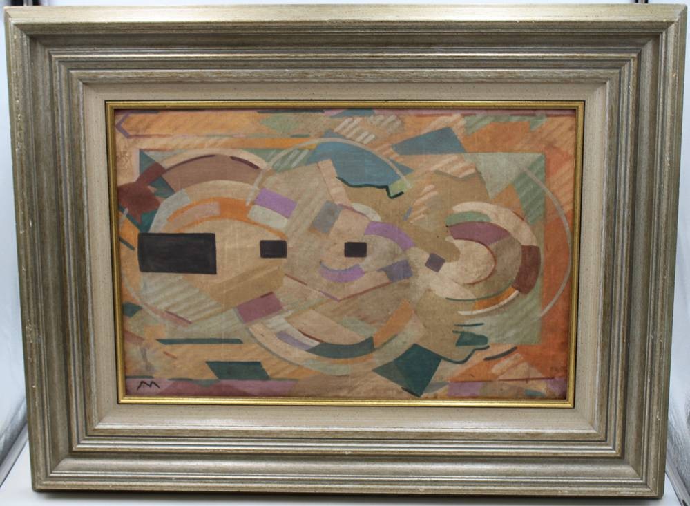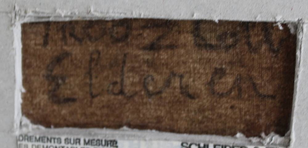 abstraktes Gemälde, monogrammiert, verso undeutl signiert wohl "Elderen", gerahmt, RG 74 x 56cm [1]