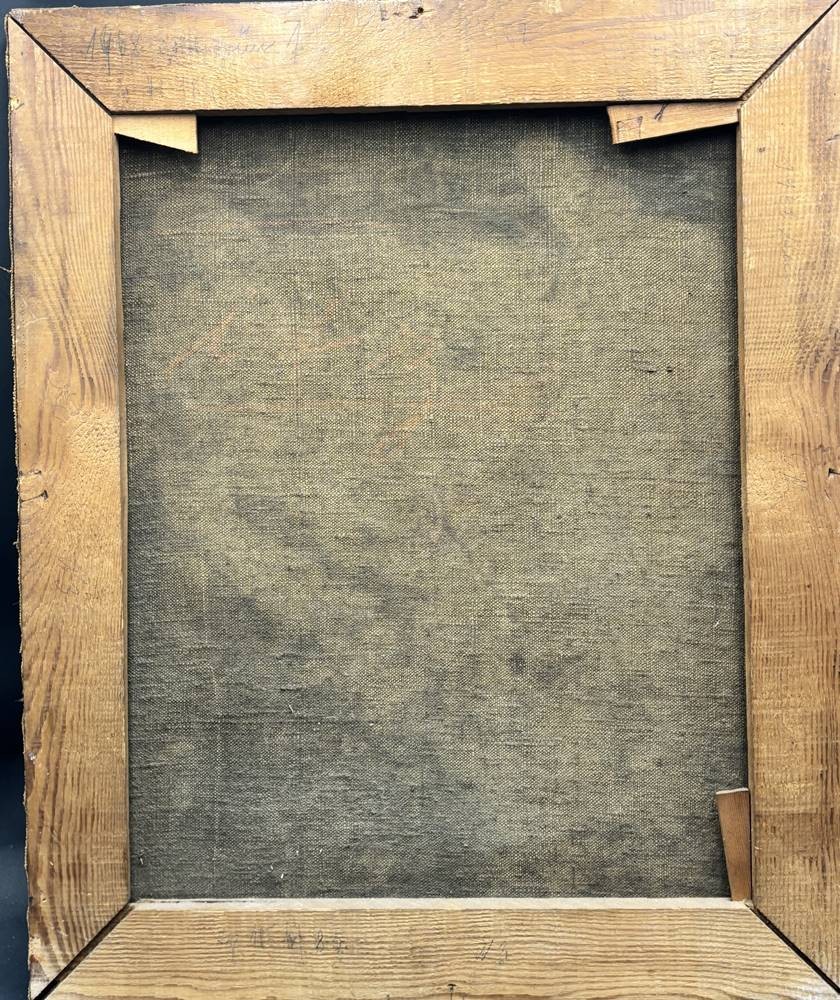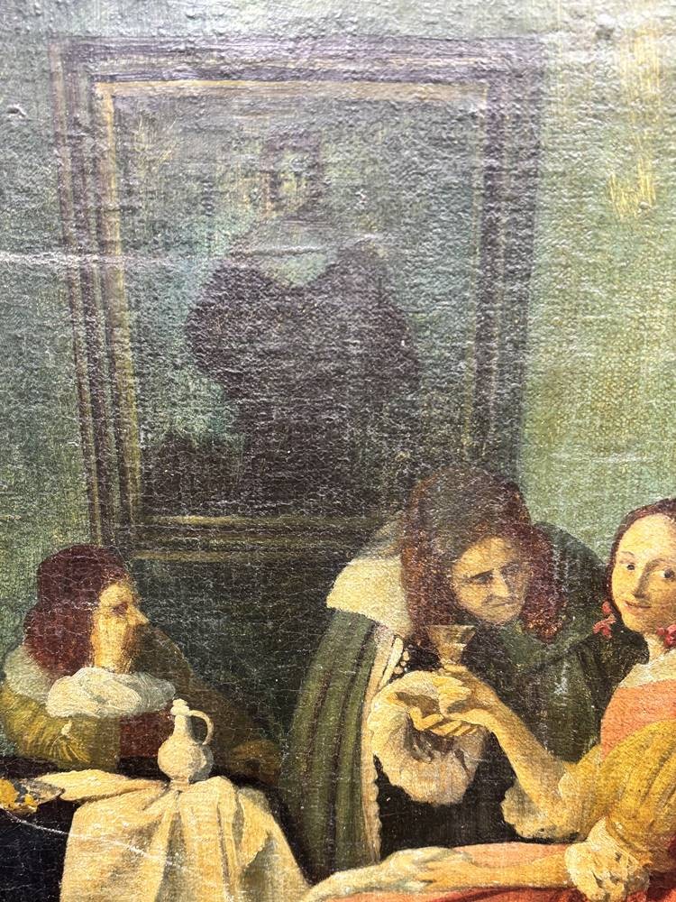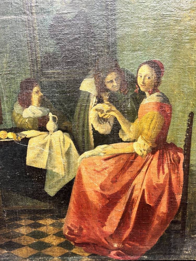 anonym bzw. verso auf Holzrahmen unleserl. beschriftet, dat. 1968, Kopie nach Vermeer "Das Mädchen mit dem Weinglas, Öl/Leinen, 60x48 cm [1]