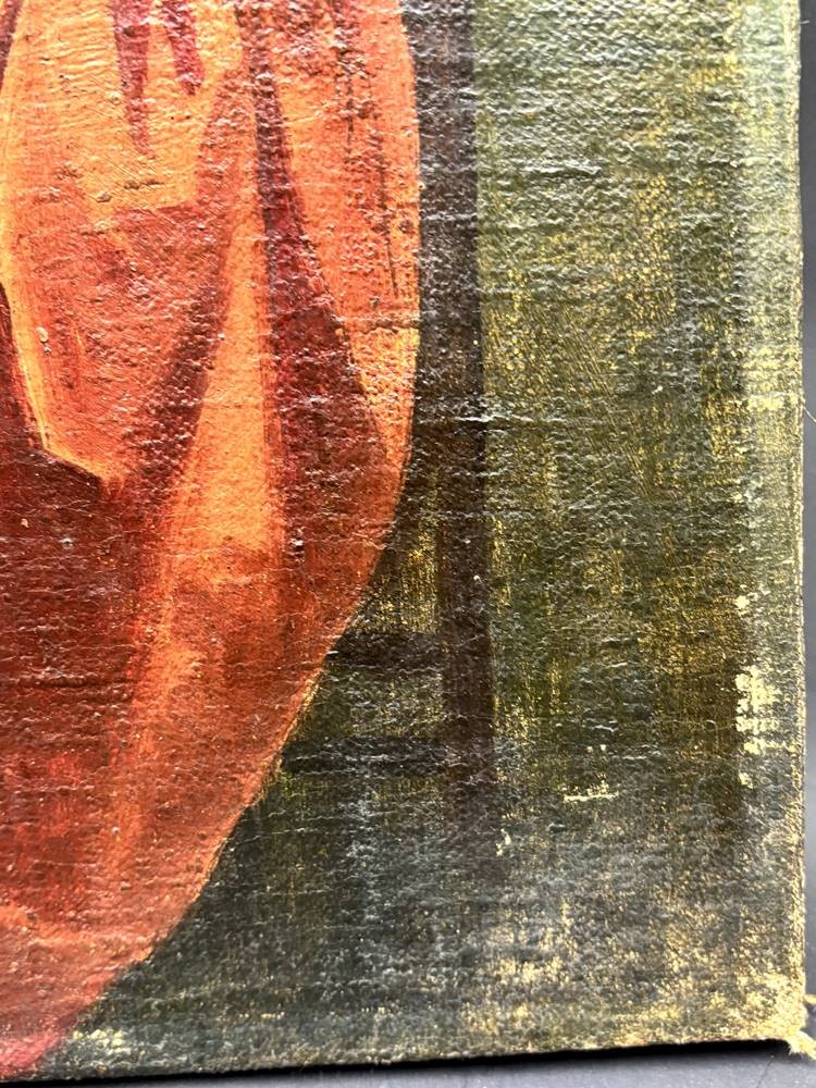 anonym bzw. verso auf Holzrahmen unleserl. beschriftet, dat. 1968, Kopie nach Vermeer "Das Mädchen mit dem Weinglas, Öl/Leinen, 60x48 cm