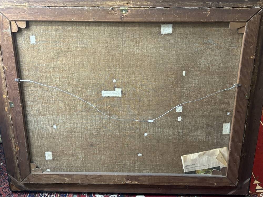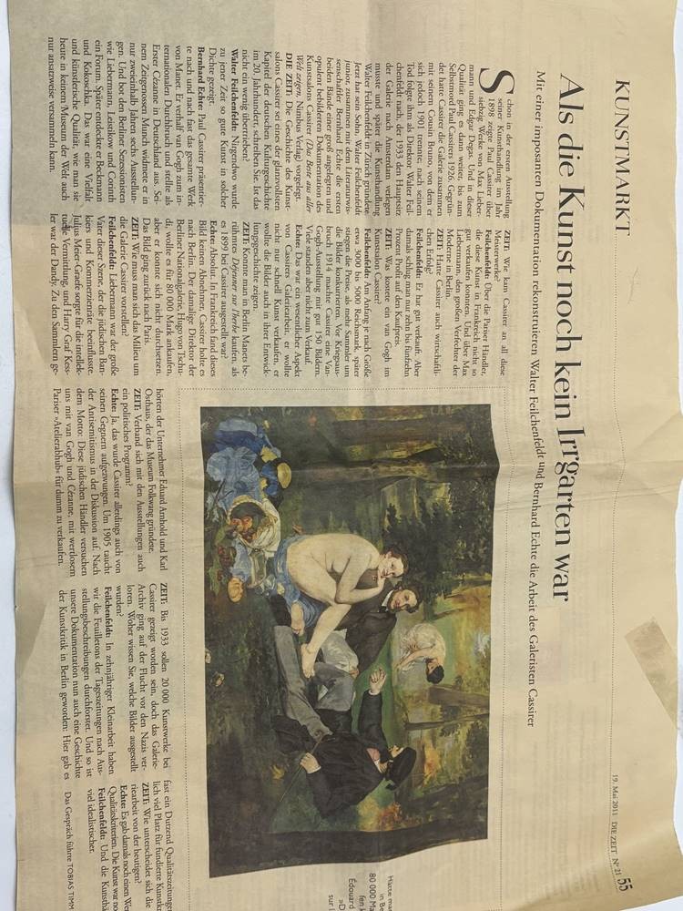anonym? "Picknick-Szene" in Anlehnung am Ed. Manet, Öl/Leinen, gerahmt, RG 112x90 cm, (Sperrgut-Versand) verso Zeitungsbericht anbei von Bernhard Echte und Walter Feilchenfeldt [1]