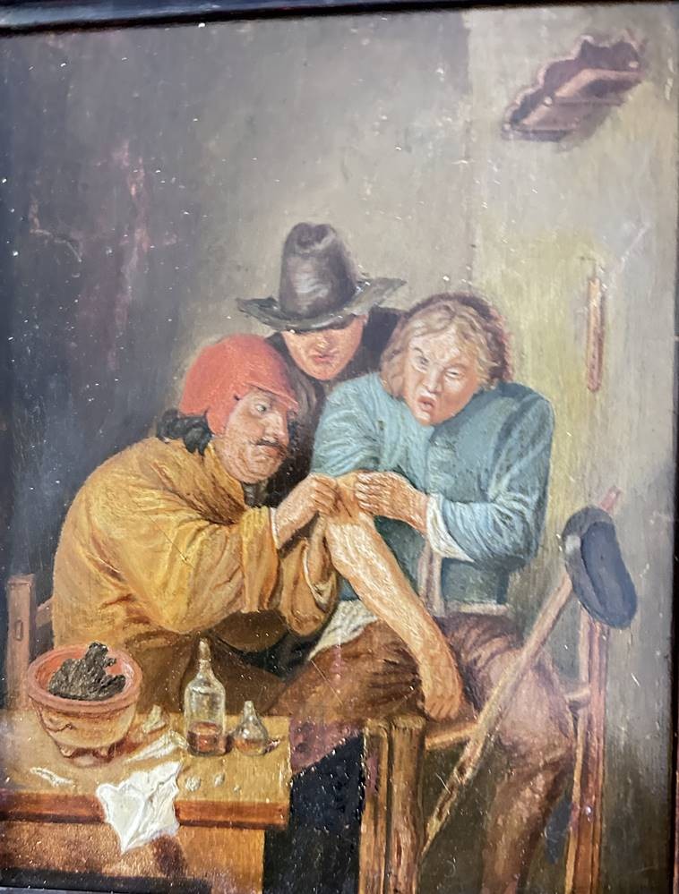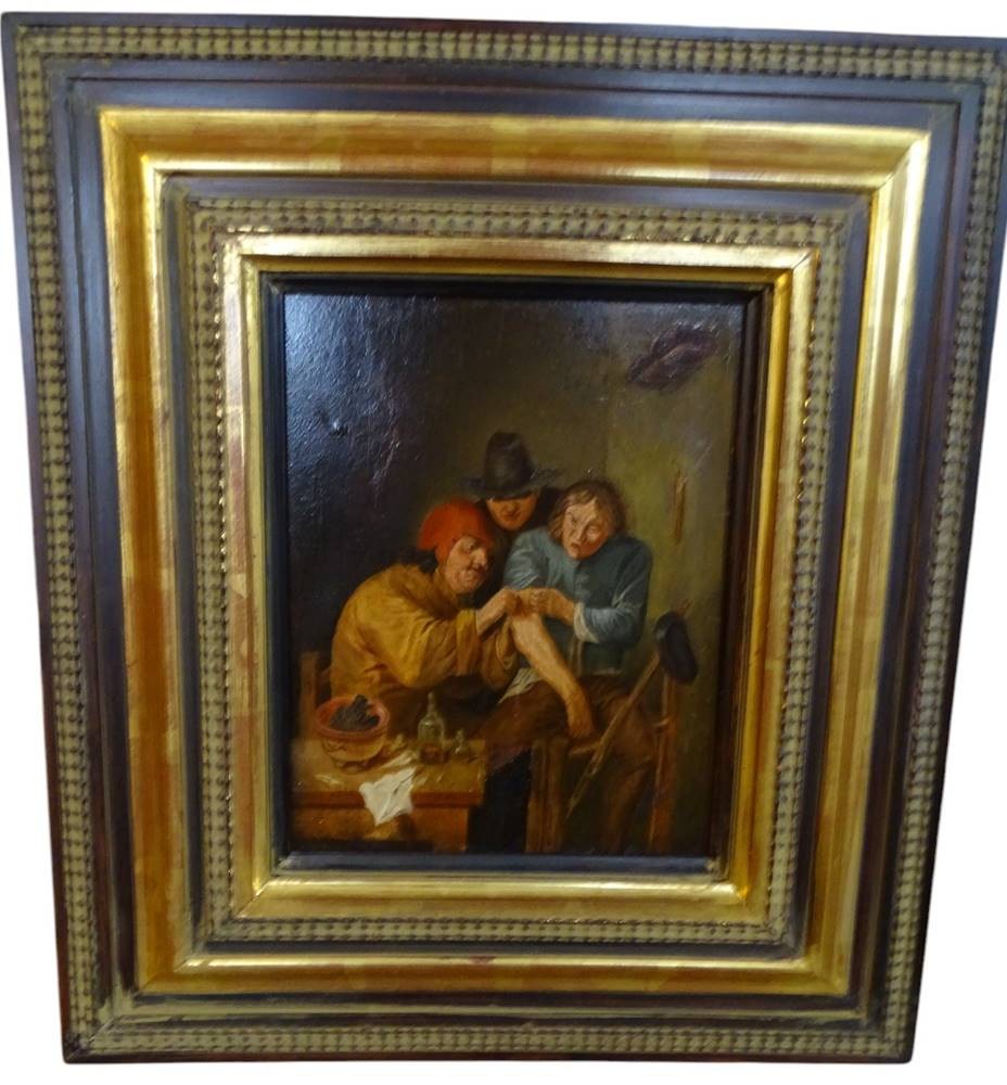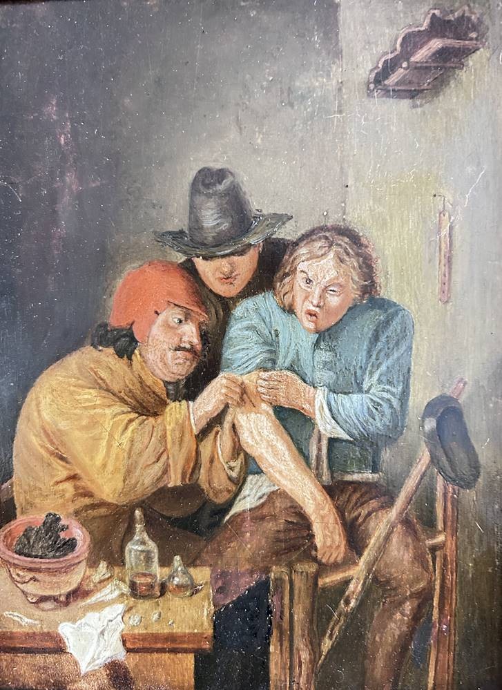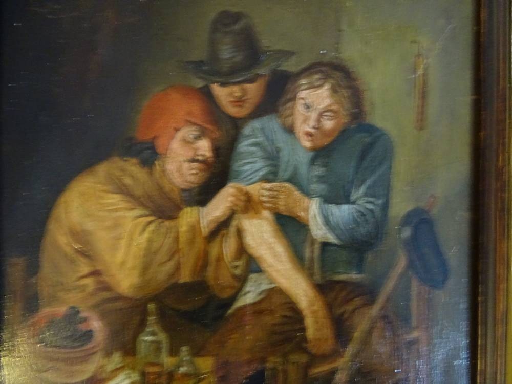 anonymer Altmeister "Beim Wundarzt", Öl/Leinen, doubliert, in Straßbourg gerahmt, RG 42x37 cm [1]