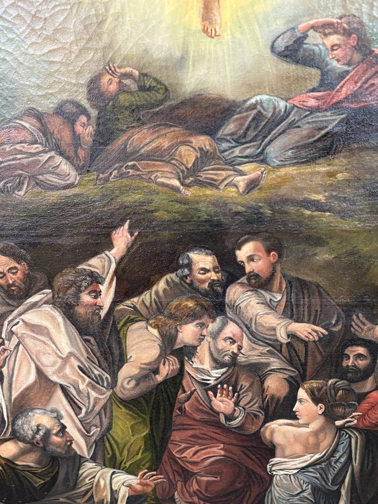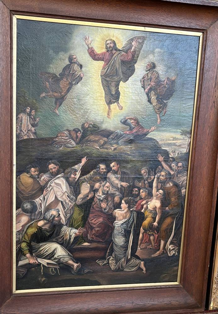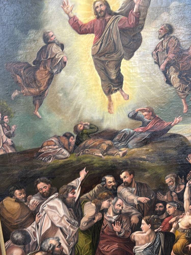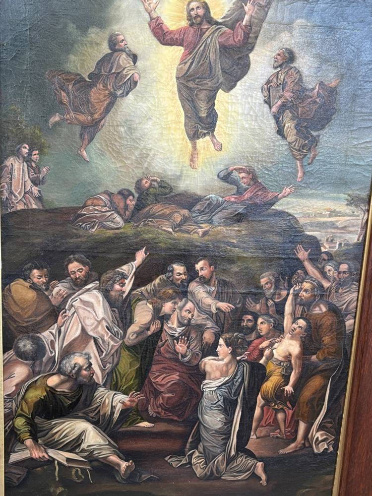 anonymer Altmeister, "Christi Himmelfahrt" figurenreiches Ölgemälde auf Leinen, gerahmt, wohl 18/19.Jhd., RG 105x76 cm, Sperrgut-Versand [1]