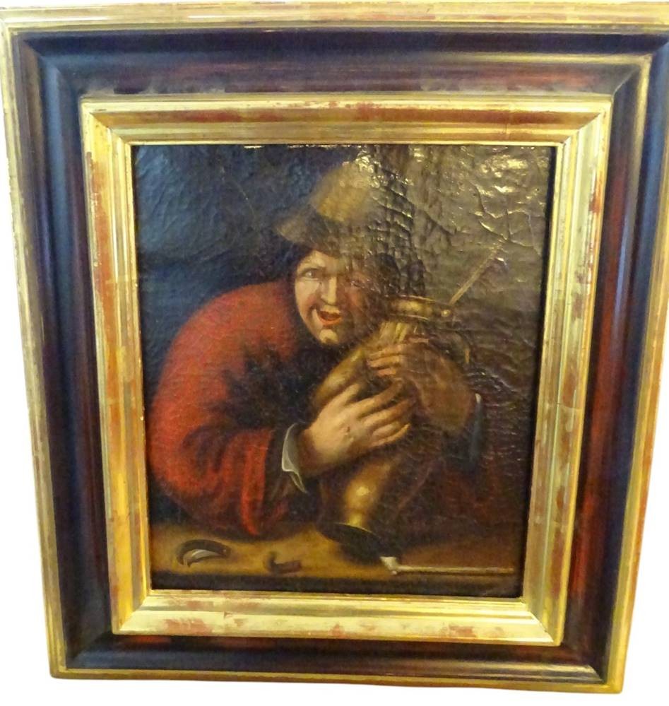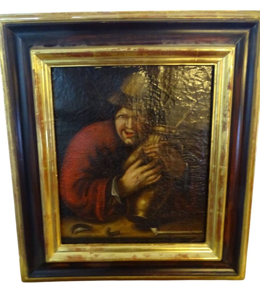 anonymer Altmeister, Mann mit Krug, Öl/Leinen, auf Holz doubliert, gerahmt, RG 44x40 cm