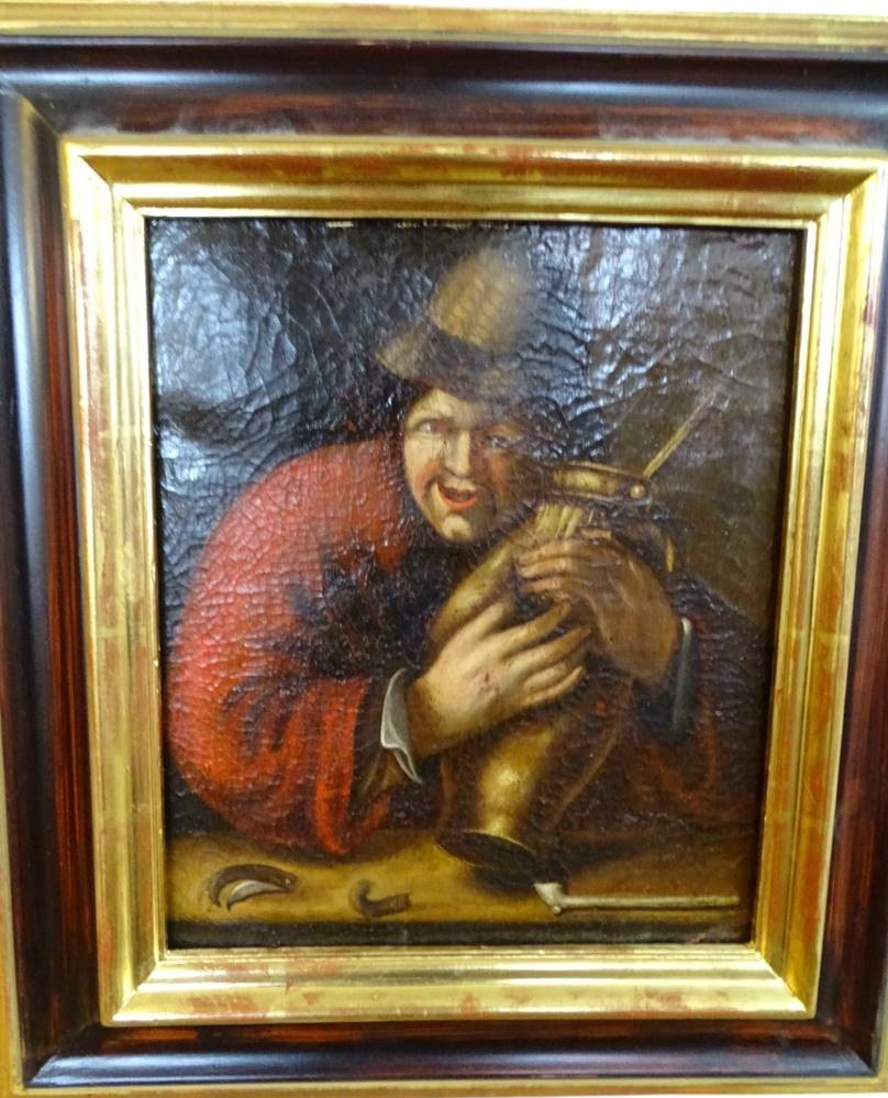 anonymer Altmeister, Mann mit Krug, Öl/Leinen, auf Holz doubliert, gerahmt, RG 44x40 cm [1]