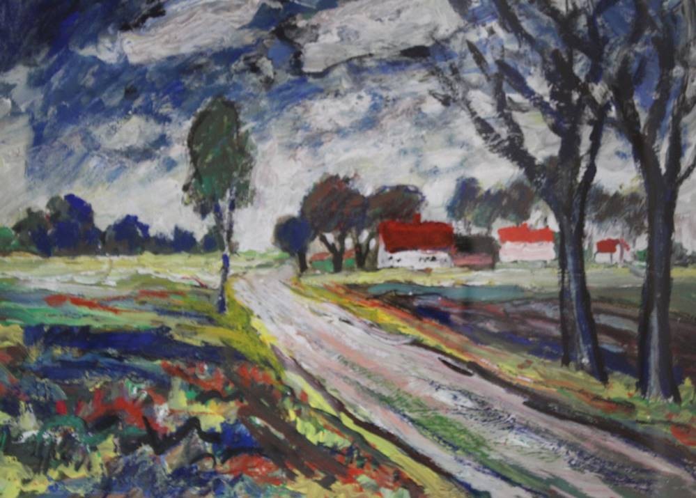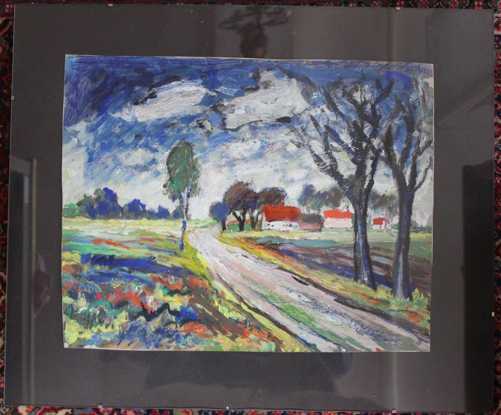 anonymes Aquarell, Dorfansicht, Nurglasrahmen, RG 50 x 60cm, Glas an den Ecken beschädigt [1]