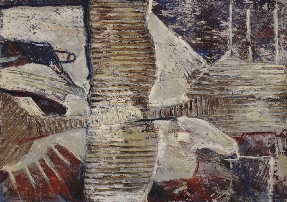 anonymes modernes Gemälde, Mischtechnik, gerahmt/Glas, RG 66 x 51cm [1]