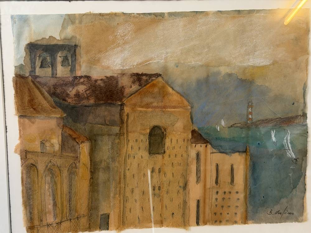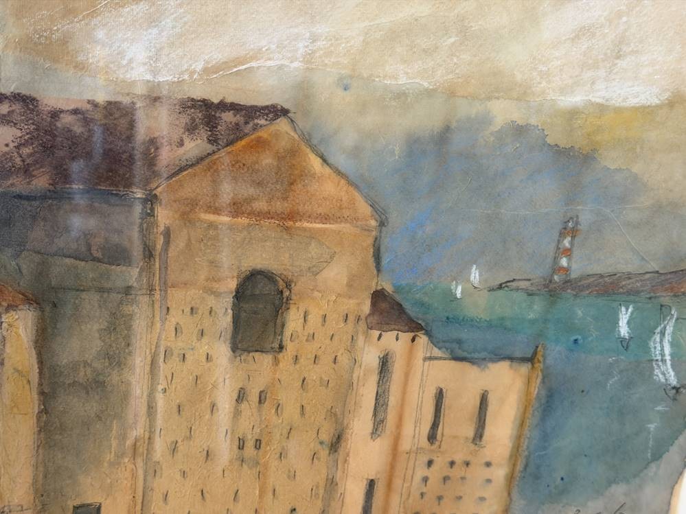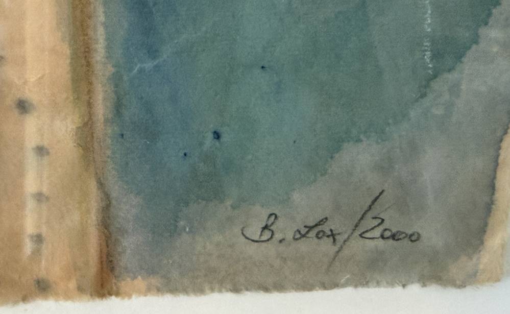 B. Lox, 2000 "südl. Häuser und Leuchtturm" Aquarell, ger/Glas, RG 64x74 cm, verso betitelt? [1]