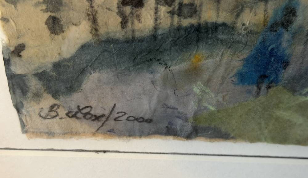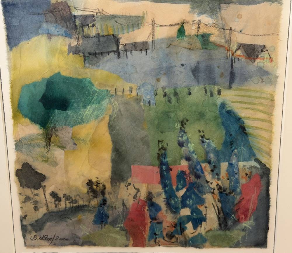 B. Lox "Landschaft" 2000, Aquarell, ger/Glas, RG 55x55 cm, verso "Rittersporn" betitelt [1]