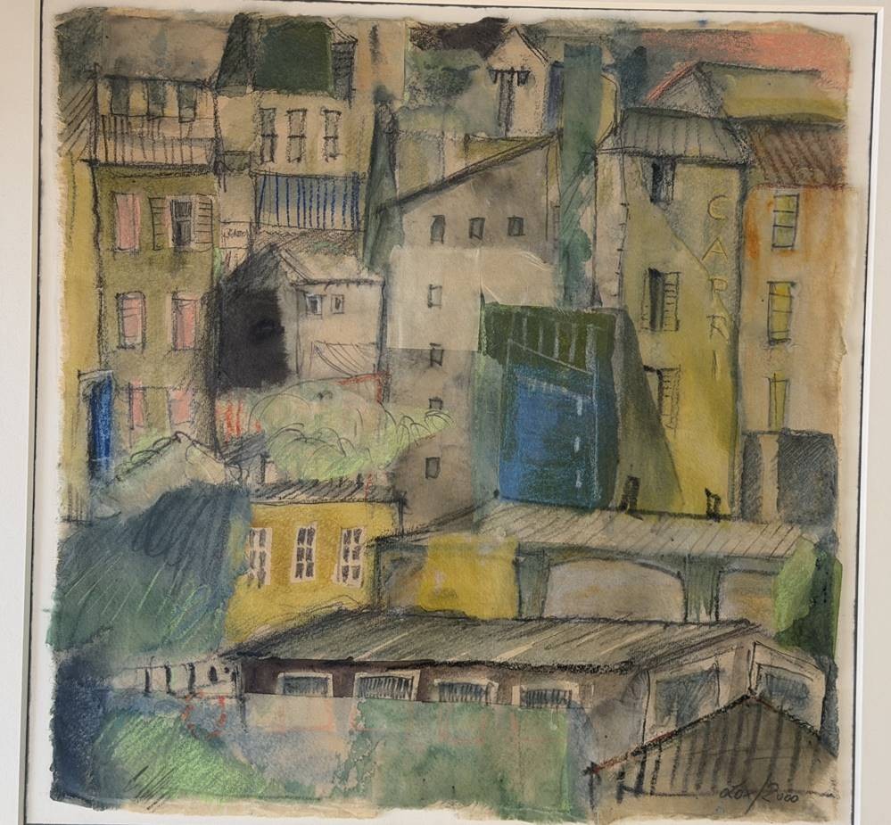 B. Lox "Stadthäuser" 2000, Aquarell, ger/Glas, RG 55x55 cm [1]