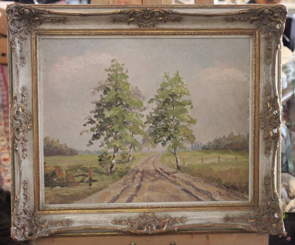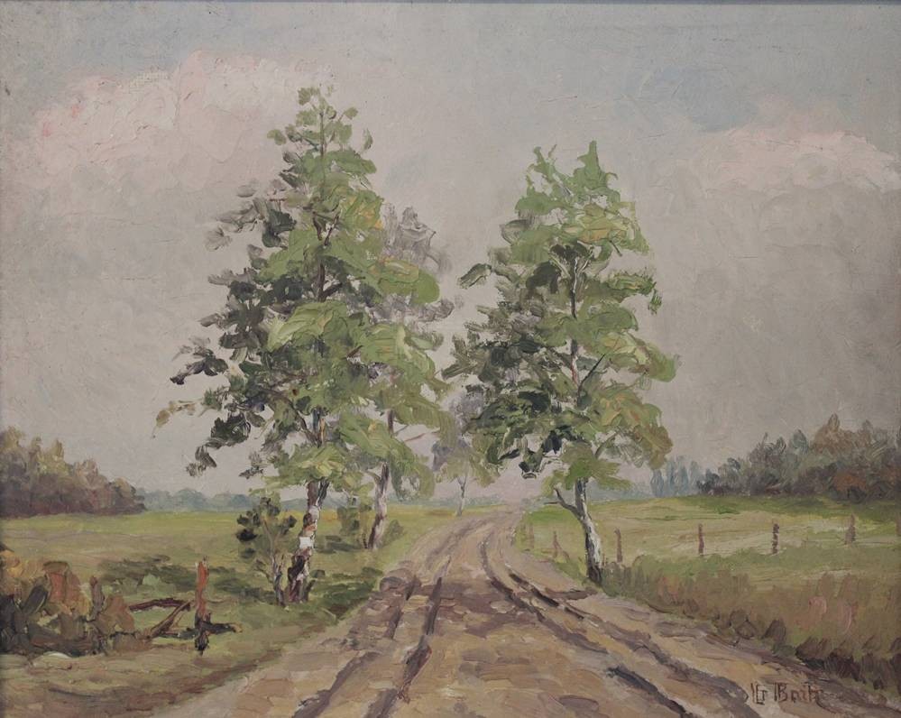 Bartz o.ä., Feldweg mit Birken, Öl/Hartfaser, gerahmt, RG 54,5 x 64,5cm [1]