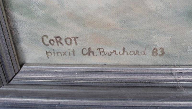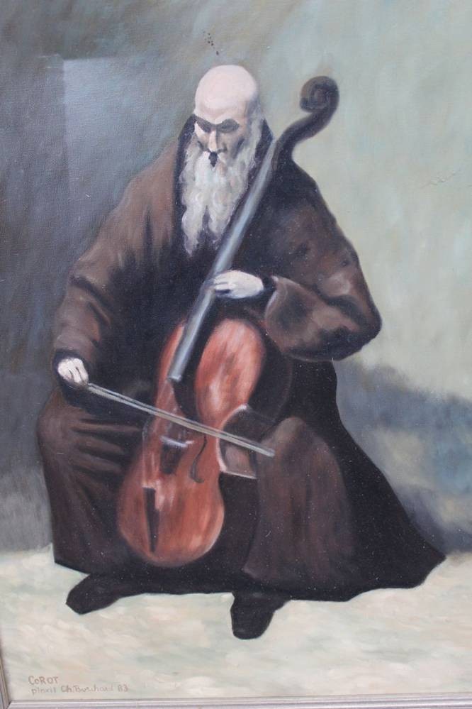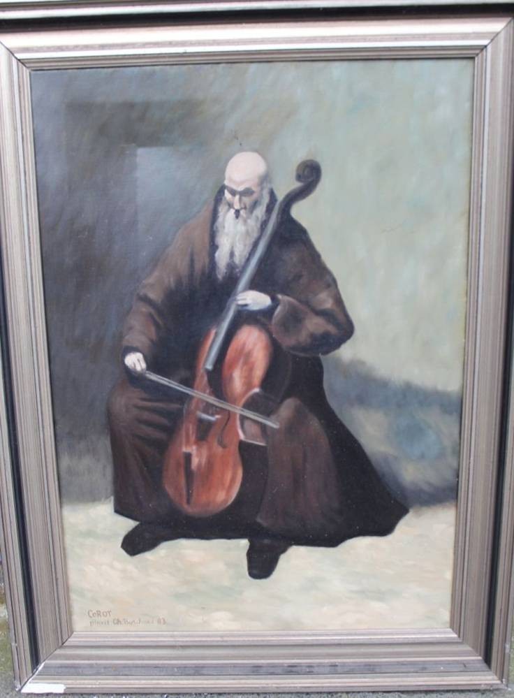 Ch. Borchard (18)83 "Cellospieler" Kopie nach Corot, Öl/Leinen, alt gerahmt, eine Druckstelle oben li., RG 82x63 cm [1]