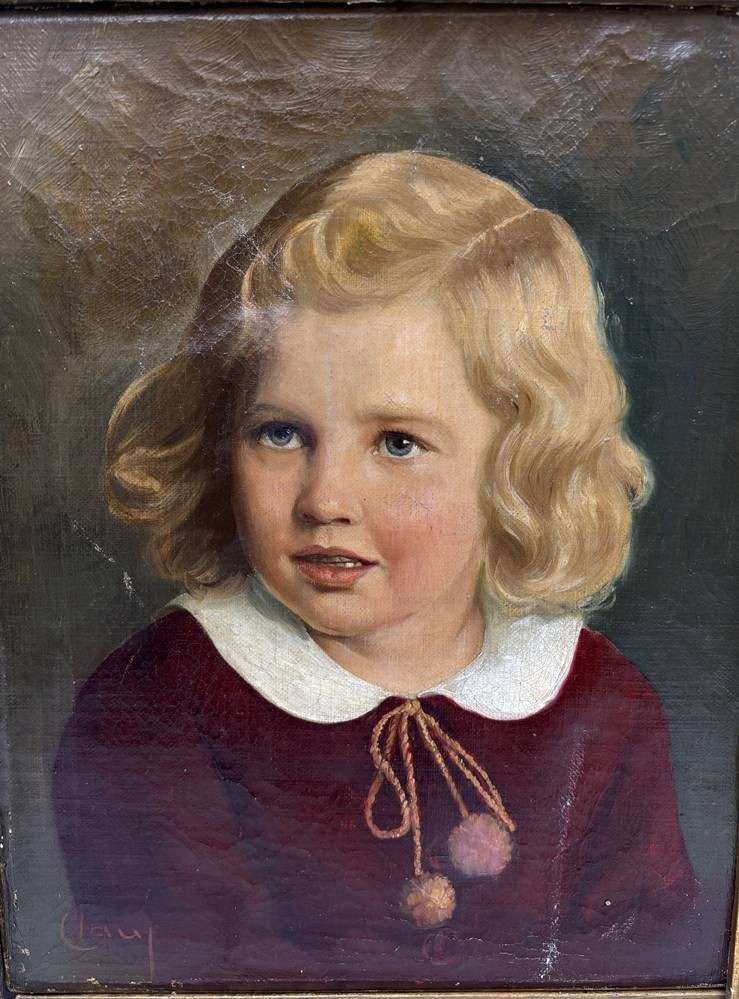 Claus "Mädchenportrait", Öl/Leinen, gerahmt, Altersspuren, RG