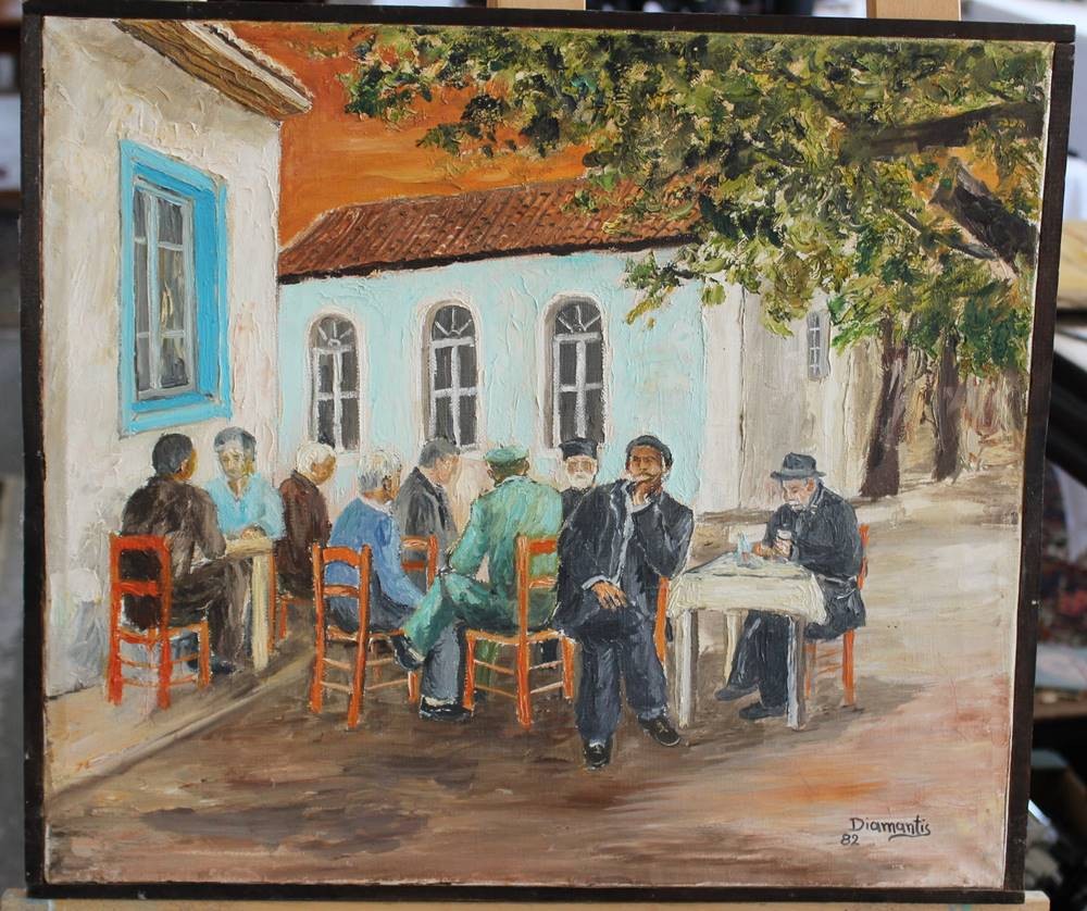 Diamantis'82, Herrenrunde, Öl/Leinwand, schlicht gerahmt, RG 46 x 52cm [1]