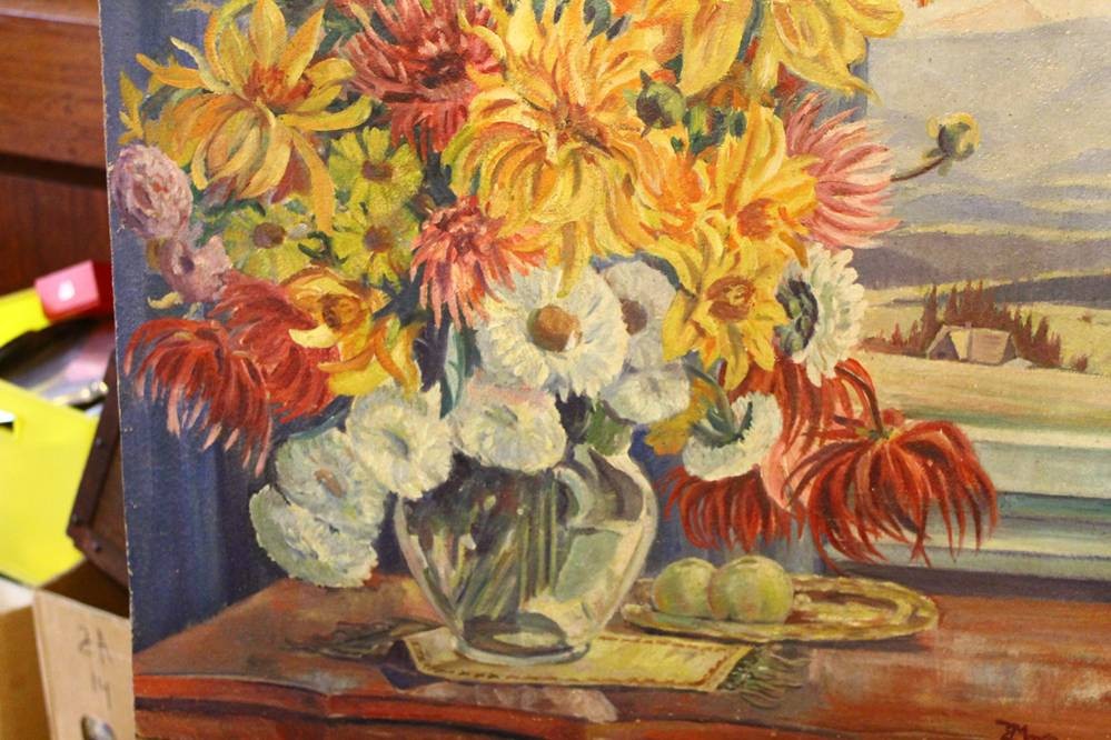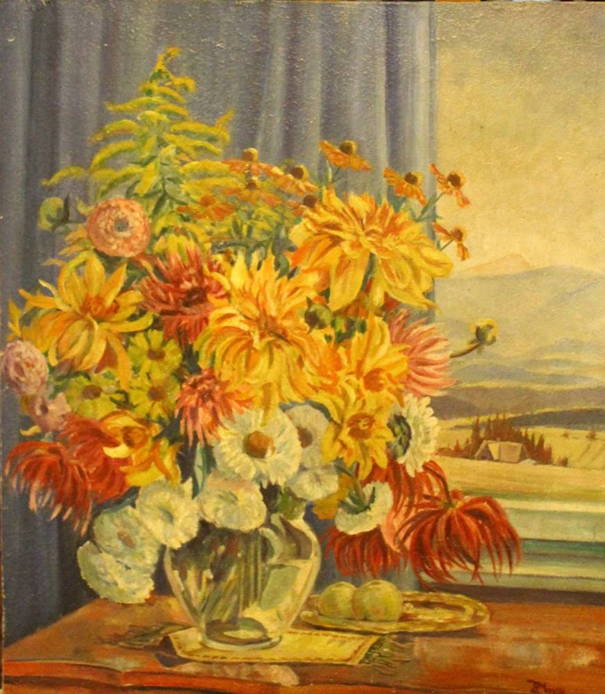 E.Menge "Astern in Vase" Öl/Malfaser, 70x60 cm [1]