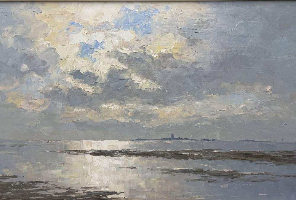 Ernst Troch (1925-1996) "Watt mit Insel Neuwerk", Öl/Leinen, alt gerahmt, RG 39x67 cm [1]
