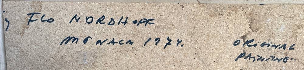 Flo Nordhoff, Monaco 1974, Öl/Platte, gerahmt , 36x51 cm, surreal. Landschaft
