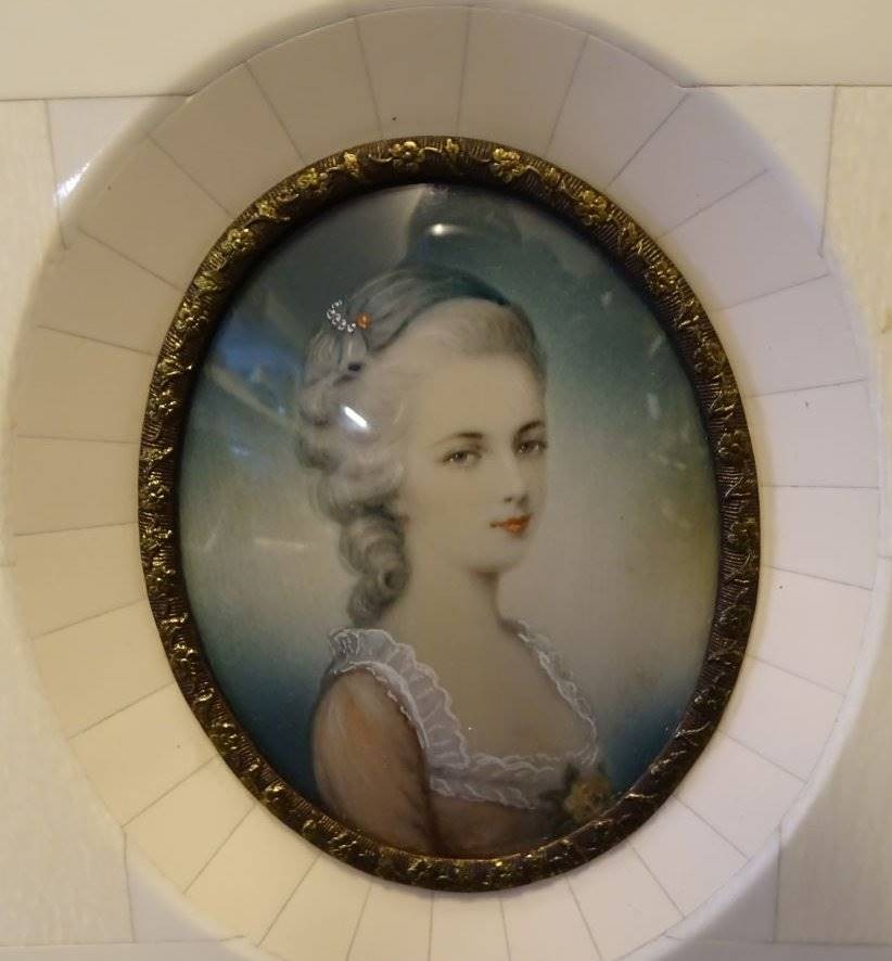 Frauenportrait, Lupenmalerei auf Mammut- Elfenbein, 14x12,5 cm
