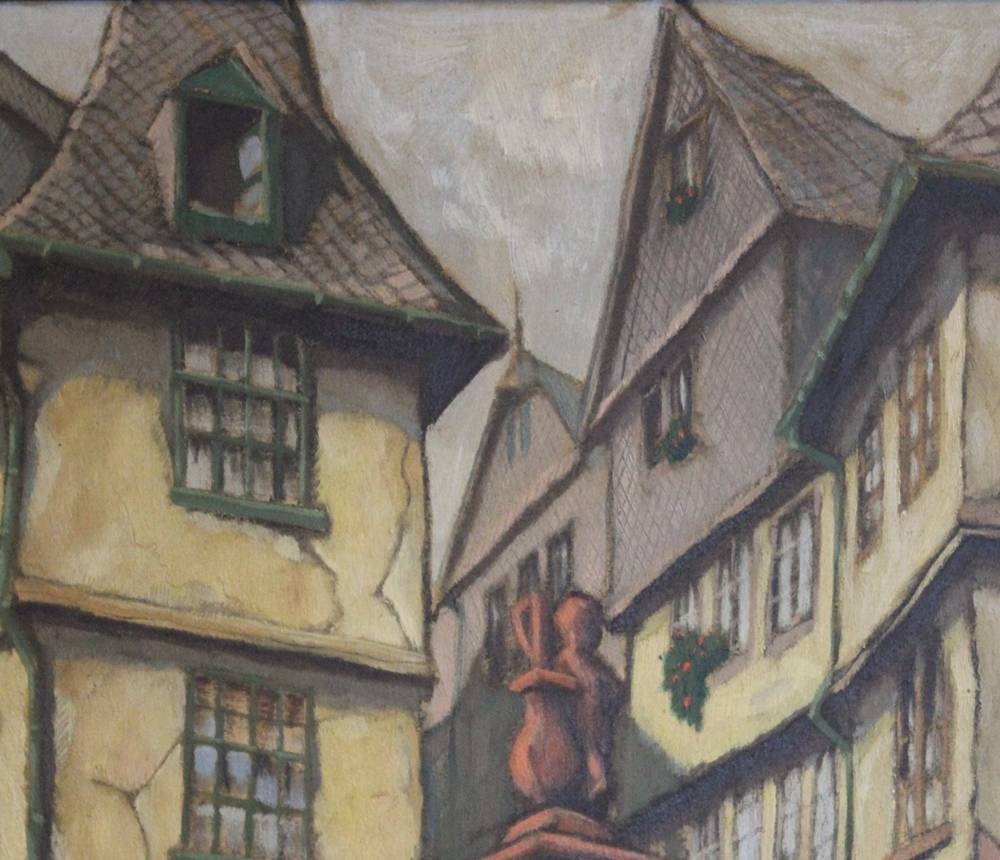 Fritz Bode 1920, Hausansicht, Öl/Leinwand, gerahmt, RG 72,5 x 81cm, Sperrgutversand!