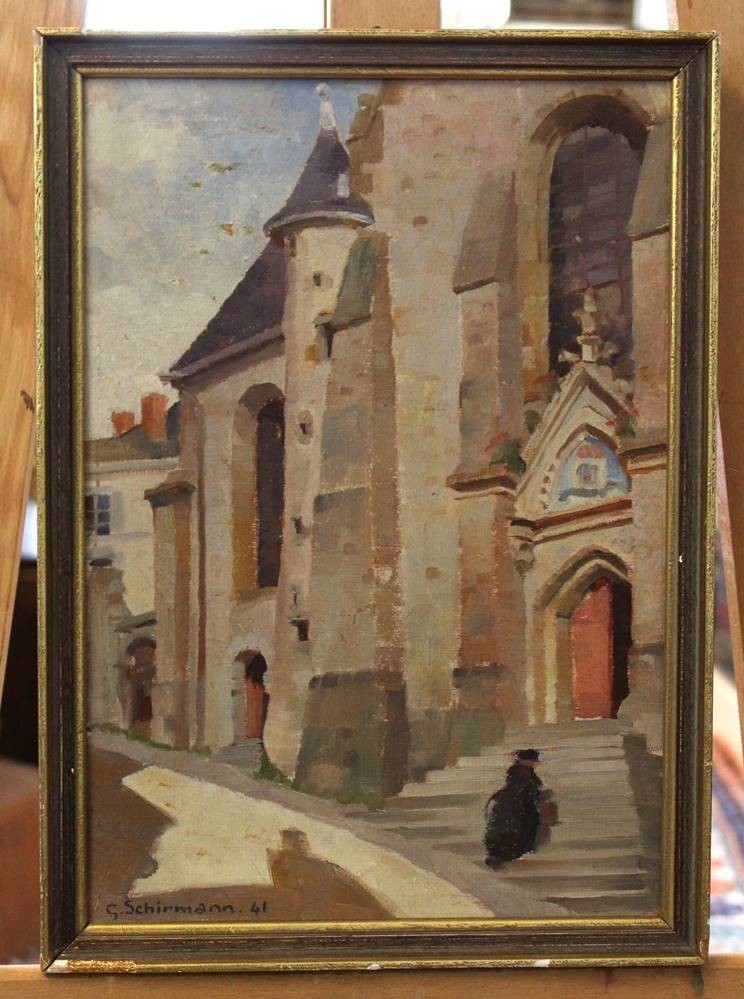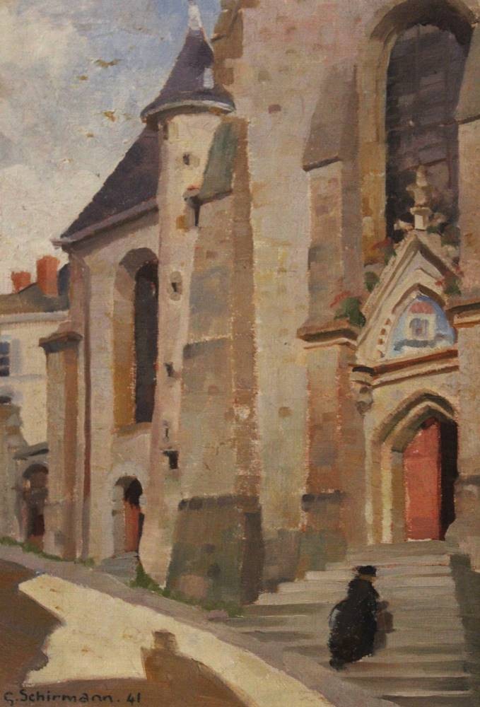 Georges SCHIRMANN (1907-1977), Kirchenansicht, Öl/Hartfaser, restau.bedürftig, gerahmt, RG 37,5 x 27cm [1]