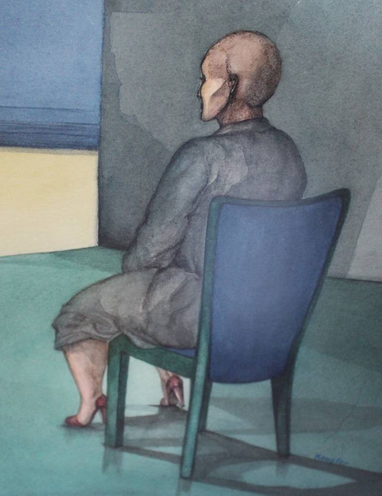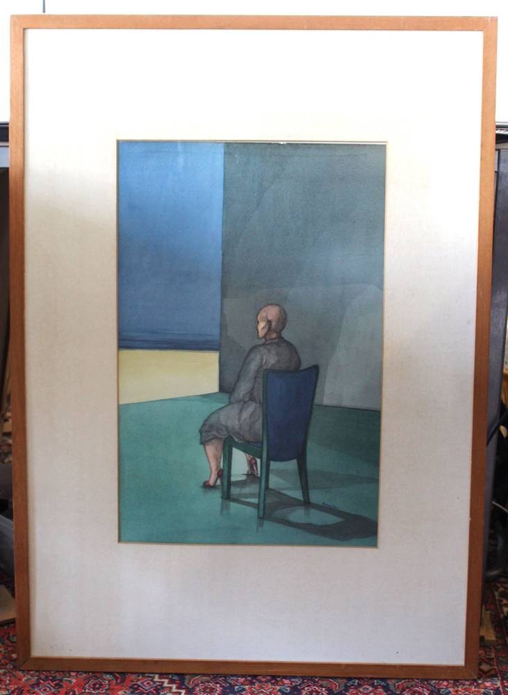 gr. Aquarell, Kahle Person auf Stuhl, r.u. "Register" bezeichnet, verso "Cadillac Hotel San Francisco Modernism", ger./Glas, RG 88 x 63cm [1]