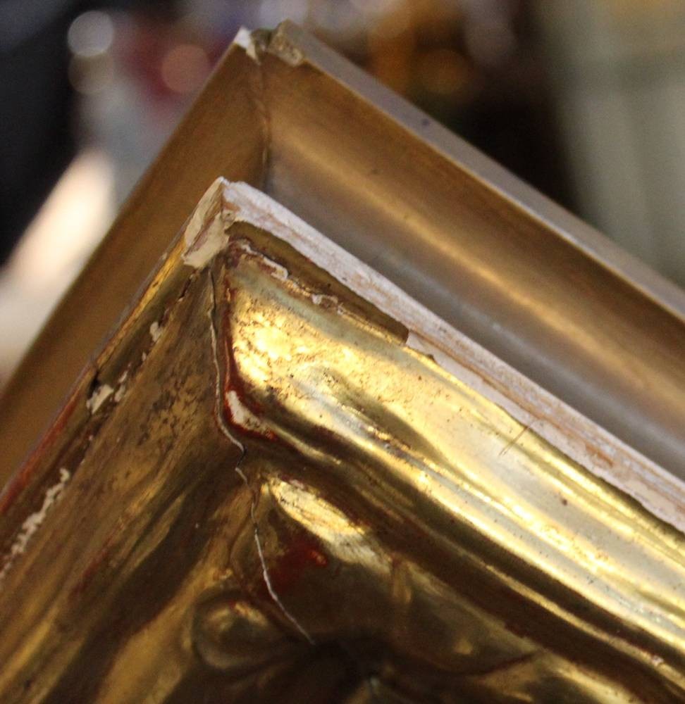 gr. Gemälde von Hermann GÖHLER (1874-1959), Personen am See, Öl/Leinwand, gerahmt, Rahmen beschädigt, RG 84 x 93cm, Sperrgutversand [1]