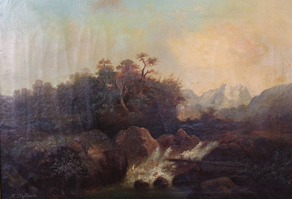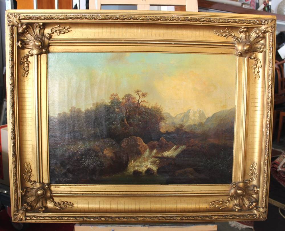 gr. Landschaftsgemälde, 19. Jhd. signiert B. HEIDLAND (XIX), Öl/leinwand, alt gerahmt, RG 82 x 102cm, Sperrgutversand! [1]